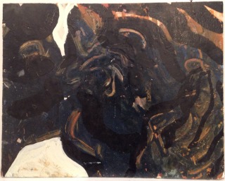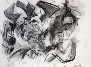 Each work in the exhibition speaks to a specific moment in Bonner’s life. In The Kiss, a charcoal drawing on wood, two profiled faces meet. The faces are darkened and tanned, the charcoal flowing like lapping water across their cheeks. This image is a moment from Bonner’s teenage years, meeting a girl at the beach in Australia. At the charged moment of a first kiss between the two, the girl yanked abruptly on his ear, explaining afterwards that he would never forget the kiss because of the unexpected pain. The at first confusing and upsetting experience transformed into a profound and fond moment in Bonner’s coming of age, an foreshadowing of life’s experiences. In another drawing, the same teenagers reappear, sitting on a surfboard in the ocean, talking. Memory is a continually evolving phenomenon within this body of work.