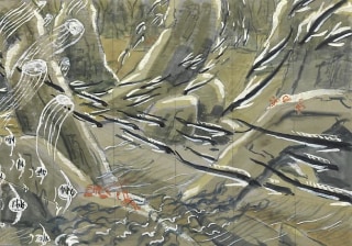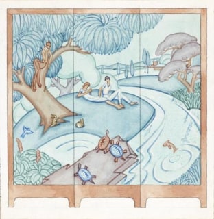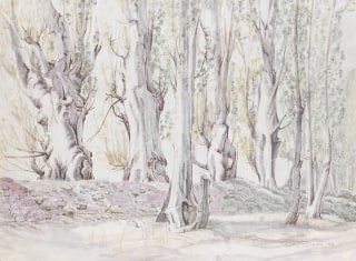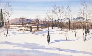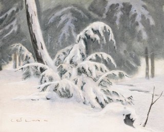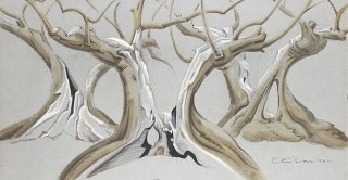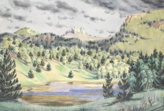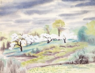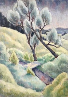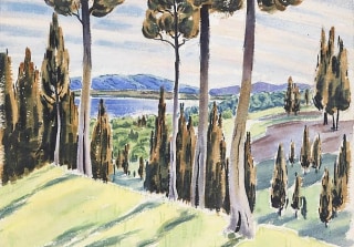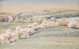 Olin Dows (1904 - 1981) was born in Irvington-on Hudson and in 1906 moved to a large farmhouse on the Hudson River just below Rhinebeck, New York where he lived for much of his life when not in Washington, D.C. and Pirque, Chile. By his own admission he wanted to paint from the time he was twelve years old and admired artists including Maxwell Parrish, Frederick Remington, Augustus John, Charles Dana Gibson, William Blake, and James Abbott McNeill Whistler. Dows was very influenced by the folding screens of Robert W. Chanler, who was raised at Rokeby in Germantown, N.Y. His family's close friendship with President Roosevelt's family in Hyde Park, recurred as an important factor in his career.
