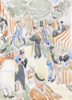 During the 1930's Dows traveled to Mexico and made woodcuts, watercolors and a few paintings, to Egypt which inspired many screens and also to Germany in the summer of 1938 on the eve of World War II. Living in Washington and having a long standing relationship with the Roosevelt's, he served as a member of the administration during the Great Depression. Working with Forbes Watson and the Treasury Department, Dows was a central figure in several aid-to-artist programs, all prior to the Federal Arts Project under the WPA created in 1935. Dows and a team reviewed hundreds of competition entries for paintings, sculptures and particularly murals intended for the many federal buildings constructed across the nation as part of the relief effort.