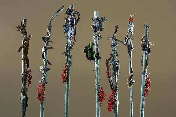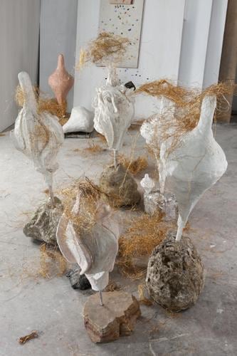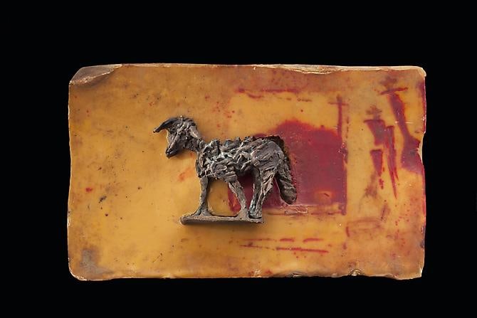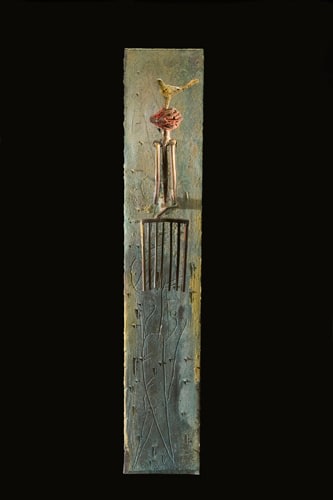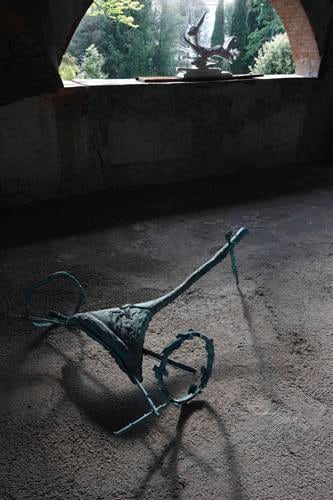 Much of Lippi’s works are created from “object trouvé” but unlike Duchamp who chose his refound “object” Lippi does not look for anything, he simply picks up whatever surrounds him within his boundaries of the Val d’Arbia, the rolling clay hills that lie just a few Km’s south of Siena in the district known as the”Crete Senese”.