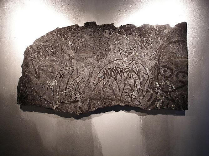 Bridging sculpture with photography, printmaking, painting, installation and performance, Pauley’s art evolved organically from his work as a headstone carver and as a photography teacher. He explores engraving anamorphic images into polished granite, which are then projected onto a wall by bouncing light off the stone’s surface. Fusing the time-intensive labor of hand engraving stone and the mechanical reproduction of photography, Pauley’s current investigations include projecting that image onto light sensitive paper in a darkroom without the use of a camera or film. Joining stone’s hard durability with the immateriality of light and shadow, Pauley creates work at once spiritual and worldly; tragic, hopeful and eternal.