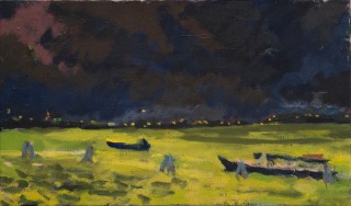 Art is a spoken word. How "that" differs from what we see sets intelligences apart; experience-by insurrection (such, this)- above the barricades but still below, well off a pedestal. The art of John Cunningham invites appeal through simultaneous disposition granted equally the vocabulary furnishes thought, the perceived feeds sensation. It pretends to neither omniscience nor authority. Handmade matter - breathed life into by human artist - form acknowledges an inheritance of tradition no less than evolution a human face. The seeds of another time and place always yield renewal in the present, and the present remains abstract. Reserve that soothes, places even sensuous capture (or animal vengeance) at the beck though not necessarily the call of intelligence, bids commend go dancing with demand; restraint refers all regarded through the prism of a pattern from which, perhaps most intriguingly, eye, ear and nose emerge with valence equal the lilies of the field - John Cunningham, artist, seeks both to admire and dissect, marvel and murder what we know: he portrays: we wish to comprehend. It is a pattern in the end blends into unknowing.