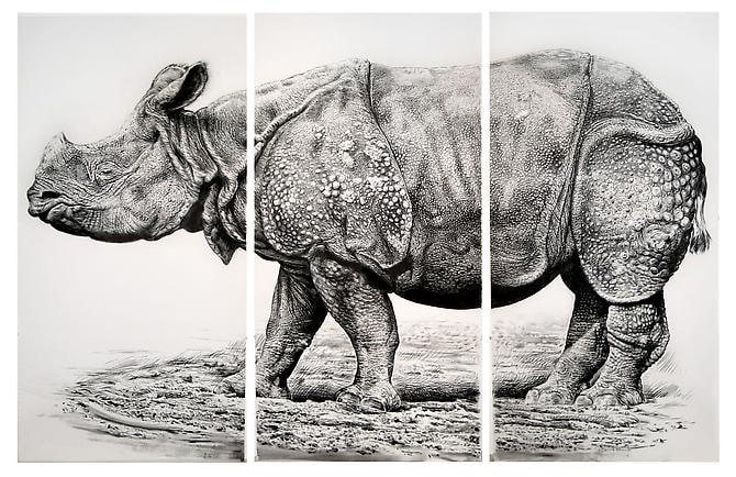 From an intimate sepia interior measuring just 10 x 7 inches to a monumental 8 x 12 foot triptych in charcoal on vellum, the exhibition focuses on connoisseurship and distinctive execution. Challenging the boundaries of technique, we have included two unique works by Nicolette Jelen - in which liquid silver nitrate is used to create 'drawn' mirrors. By pouring silver on to glass surfaces and drawing through the fresh silver with a pointed wooden stylus, Jelen achieves an innovative aesthetic effect, the reverse of 'silver point' drawing on paper. Steven Pauley will also present his beautiful engravings on stone.