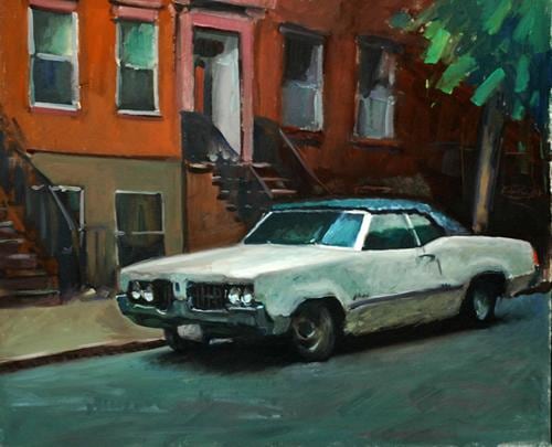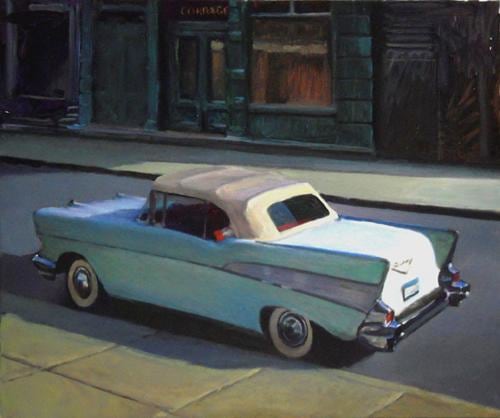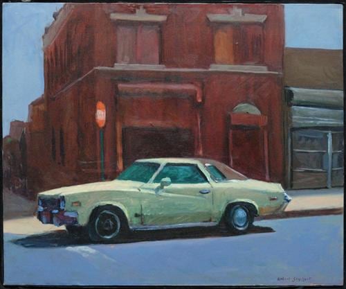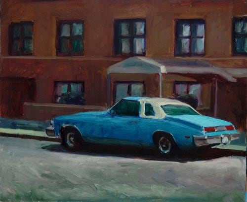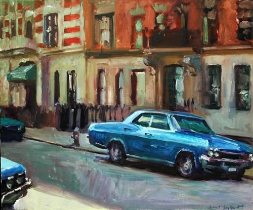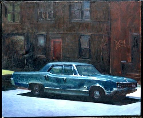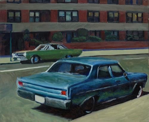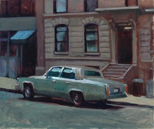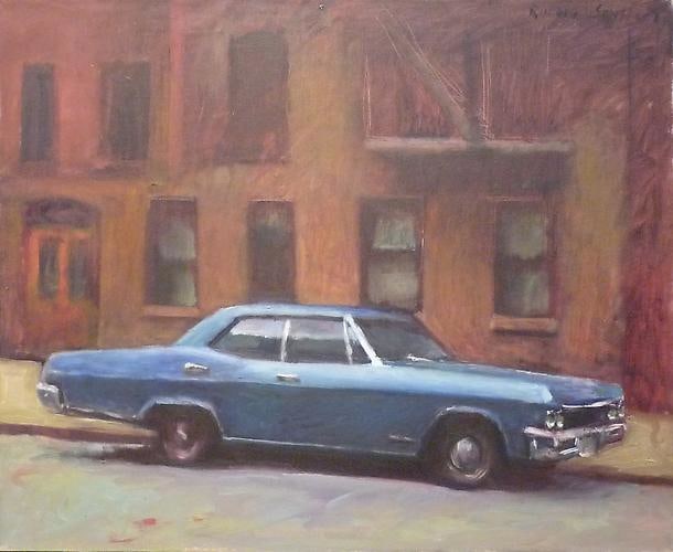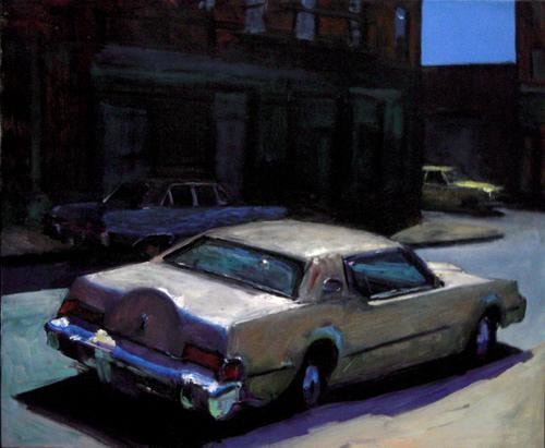 The exhibition places Seyffert’s most recent New York cityscapes and automobile paintings in dialogue with his earlier works from the 1990s and his first explorations of these subjects in late 1980s while he was teaching in Baltimore. Seyffert’s works in this exhibition depict mid-to-late 20th century cars within both real and imagined urban landscapes. Vehicles that defined the changing desires of the American dream, from a 57 Chevy to a Pontiac Delta 88, are painted with the intention of inciting memory and nostalgia. Yet, the detached and almost voyeuristic aesthetic of each of Seyffert’s scenes renders the works even more compelling. The virtuosic use of oil paint excites the viewer’s sense of beauty; “Whether it’s a big tree or a 1965 Pontiac,” Seyffert said, “there’s something about the light hitting the subject that excites me, and that’s what I paint. . . I’m trying to get the sensation created by the thing I’m looking at, and not just copying it” (Howell, 2003).