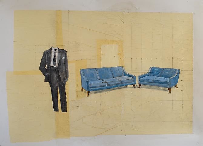 Couches, 2013, Acrylic with trace paper on paper, 30 x 22 inches