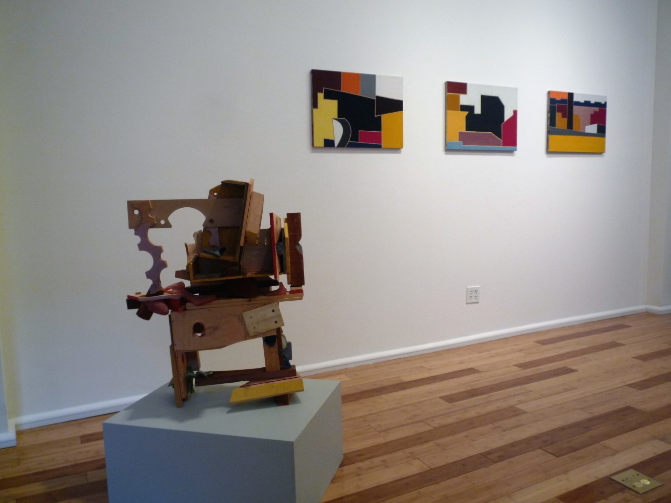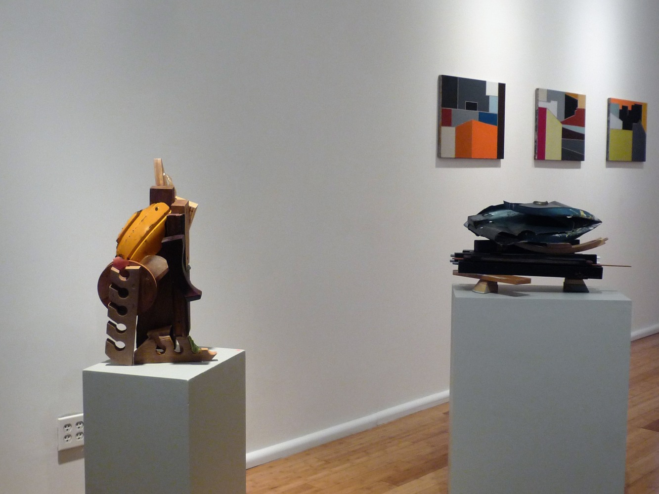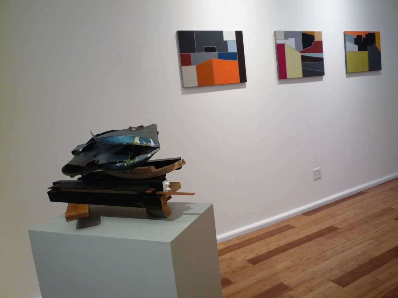 As Erik Ulman, professor at Stanford University, writes, “…one obvious difference between your arts: between open space and congestion, between flatness and three-dimensionality. Such difference is part of why the paintings and the sculptures go together so well, as complements; but it also may be as though the spaces among the assertively individual shapes within, say, Liv’s Scrap Metal paintings were to open out and include Paula’s sculptures as well, sparking a charge from the one to the other.”
