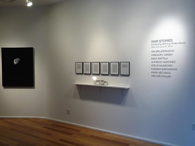This is the landscape the artists in War Stories inhabit. Nin Brudermann, Gregory Green, Alfredo Martinez, Steve Mumford, Trevor Paglen, Farideh Sakhaiefar and Piers Secunda are wholly dissimilar in a number of ways. They do not constitute a movement, a "school". What they share is a sensibility. Like the Pop artists - another non-School - they see that there are new elements in the world around them. And that this is what they need to work with.