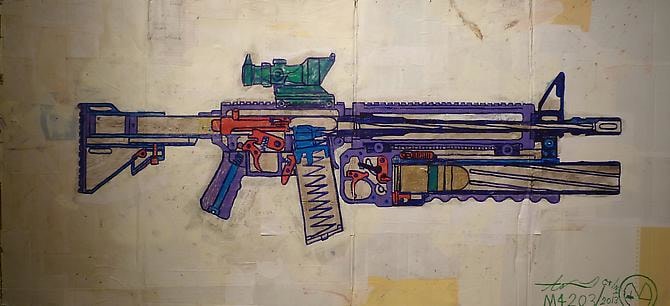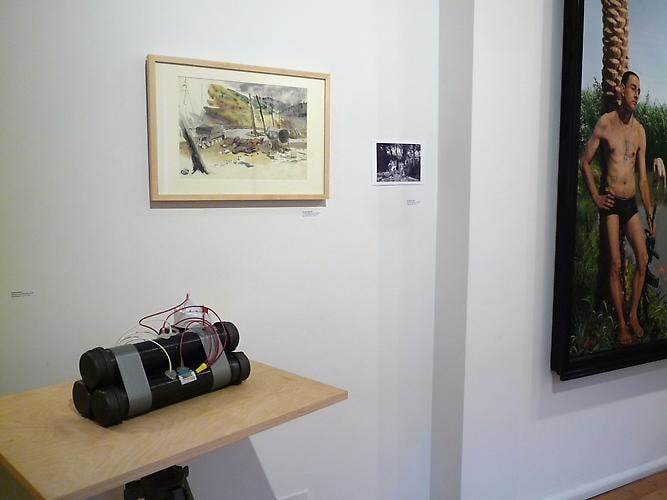 War Stories brings together an impressive and diverse group of artists, whose work focuses primarily on war and conflict. The exhibition features Steve Mumford's documentary watercolors from Iraq and Afghanistan, cast Taliban bullet holes by Piers Secunda, video work of Desert Storm by Nin Brudermann, Farideh Sakhaiefar's collection of smuggled U.S Army war objects to Iran, photography by Trevor Paglen, terrorist bomb sculptures by Gregory Green, andAlfredo Martinez's firearms drawings alongside a video interview by Mika Mattila.